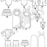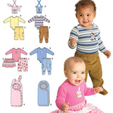 Perfect for a beginner. Babies' Pants, Skirt, Bibs, Knit Bodysuit and One Size Bunting.