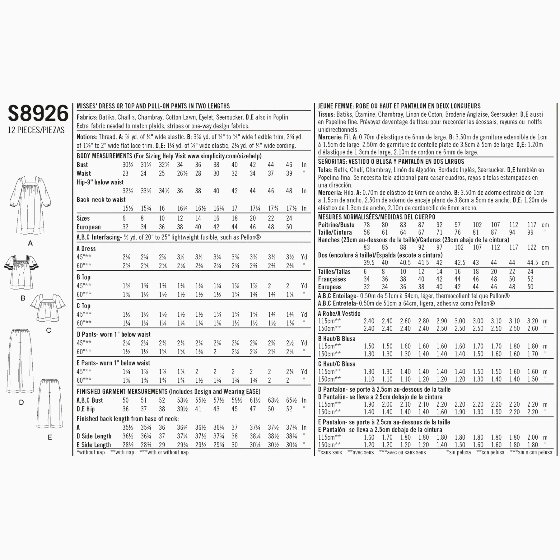 Home Simplicity 8926 - Dress, Tops, and Pants