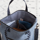 A mid-sized crossbody tote with front zippered pocket, back slip pocket, zip top closure and reinforced base. This will be your go-to bag for everyday use! The handy short handles make for easy grabbing and the crossbody keeps you hands free! This bag is great for traveling and is perfect for keeping organized. You’ll love this tote!