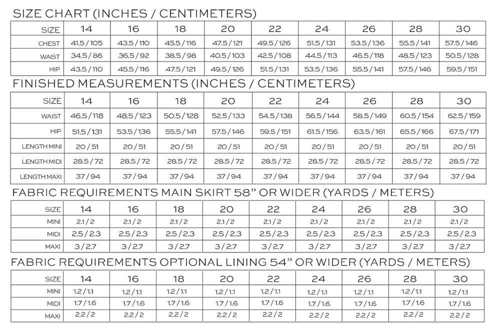 Sizes: 0-18 (US) / 4-22 (UK) | 14-30 (US) / 18-34 (UK)