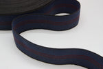 50mm wide (2") strong elastic webbing tape for use primarily in upholstery, particularly for sprung bases or chair backs, but can also be used for bags and creative crafts purposes. Stiff heavy duty hand feel with little ability to roll, and an interesting striped appearance.
