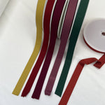 Single jersey binding for finishing stretch garments. Slight lustre to it due to the composition. Finished width: 20mm (40mm open).